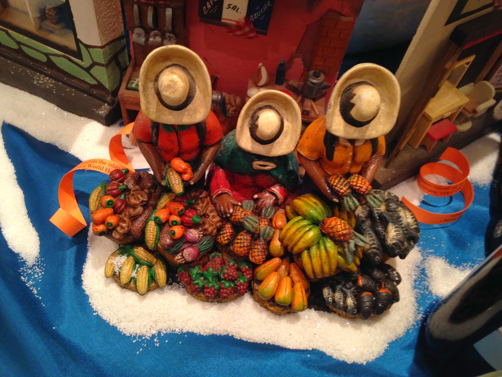 On Sunday we attended the Global Connections Fundraiser - Passport on a Plate. The theme was the ocean and the Caribbean (everybody's yearning for sunshine) and each of the tables was decorated by a volunteer. For me, the most beautiful decoration was the one named People, Places and Things, made by our very own Jane Reese.